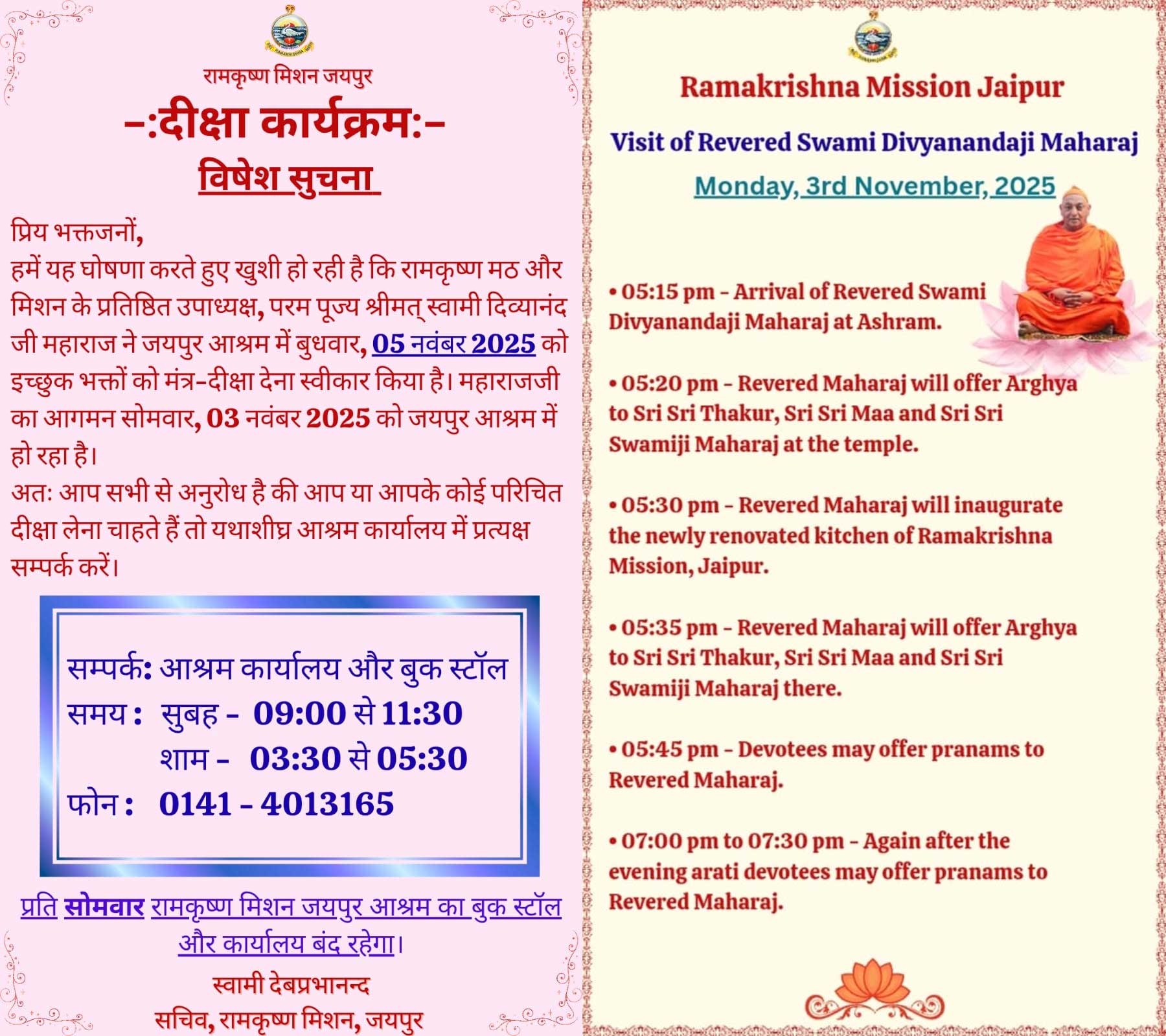 рдкреНрд░рддрд┐ рд╕реЛрдорд╡рд╛рд░ рд░рд╛рдордХреГрд╖реНрдг рдорд┐рд╢рди рдЬрдпрдкреБрд░ рдЖрд╢реНрд░рдо рдХрд╛ рдмреБрдХ рд╕реНрдЯреЙрд▓ рдФрд░ рдХрд╛рд░реНрдпрд╛рд▓рдп рдмрдВрдж рд░рд╣реЗрдЧрд╛ред