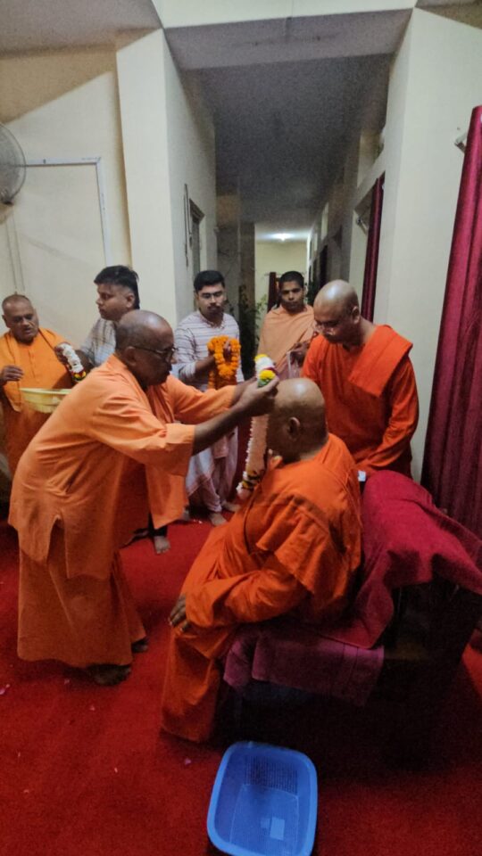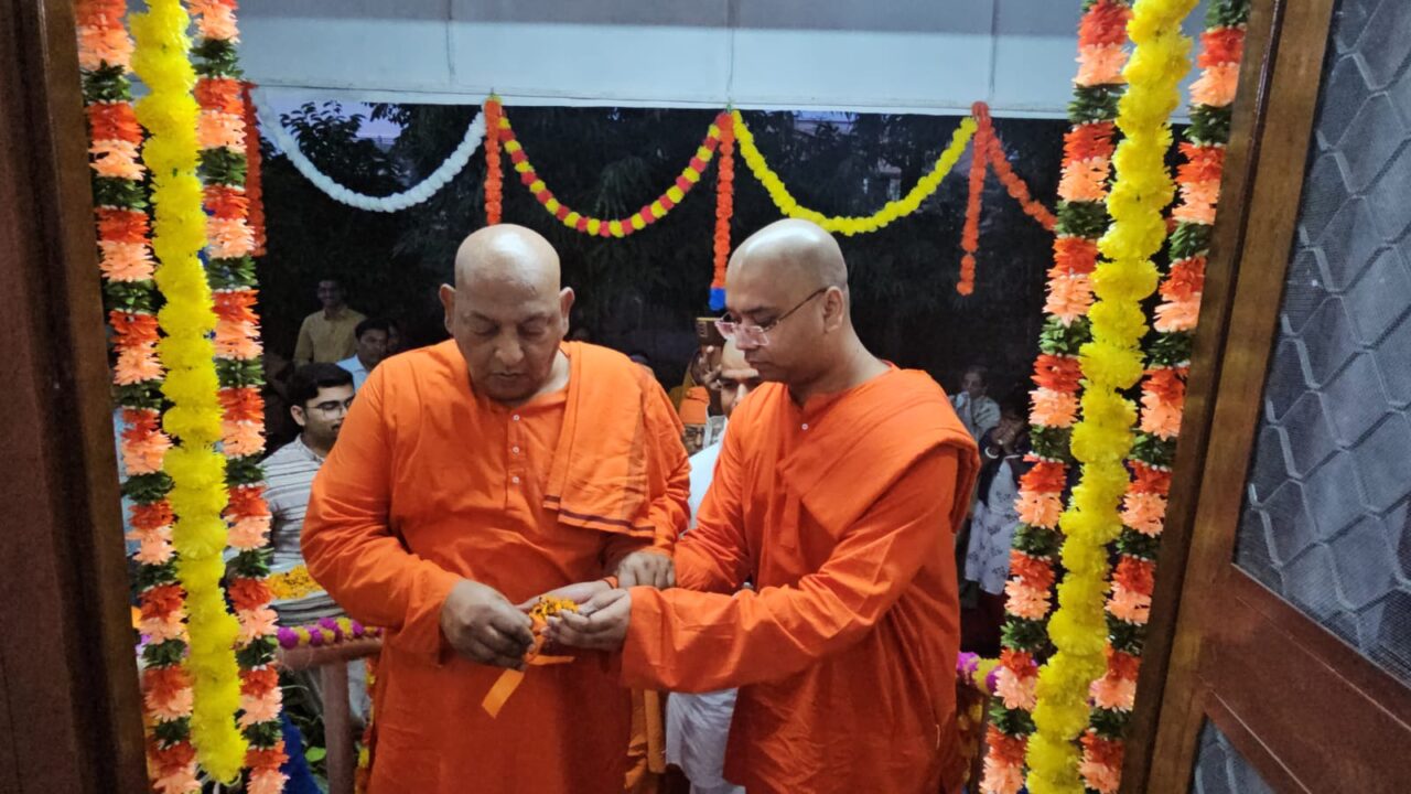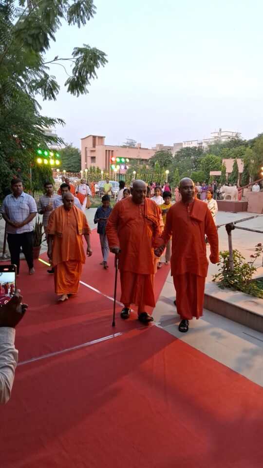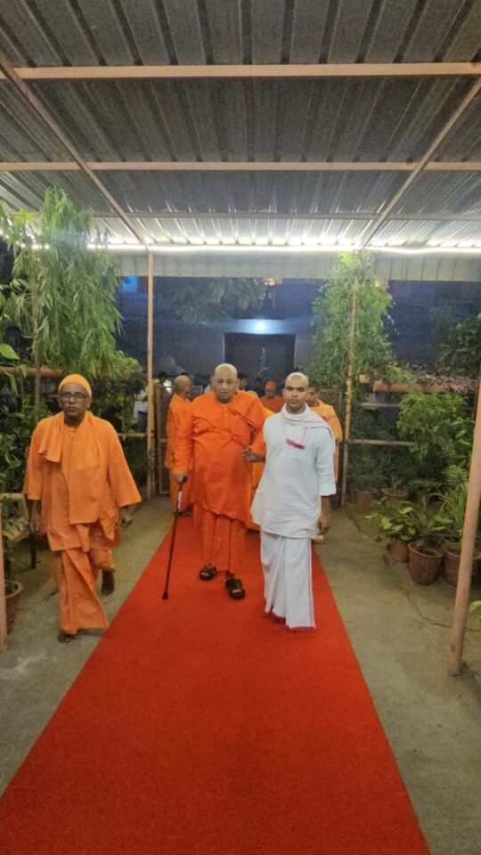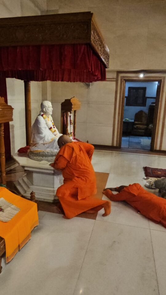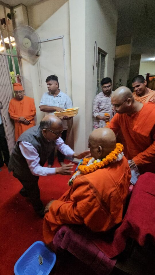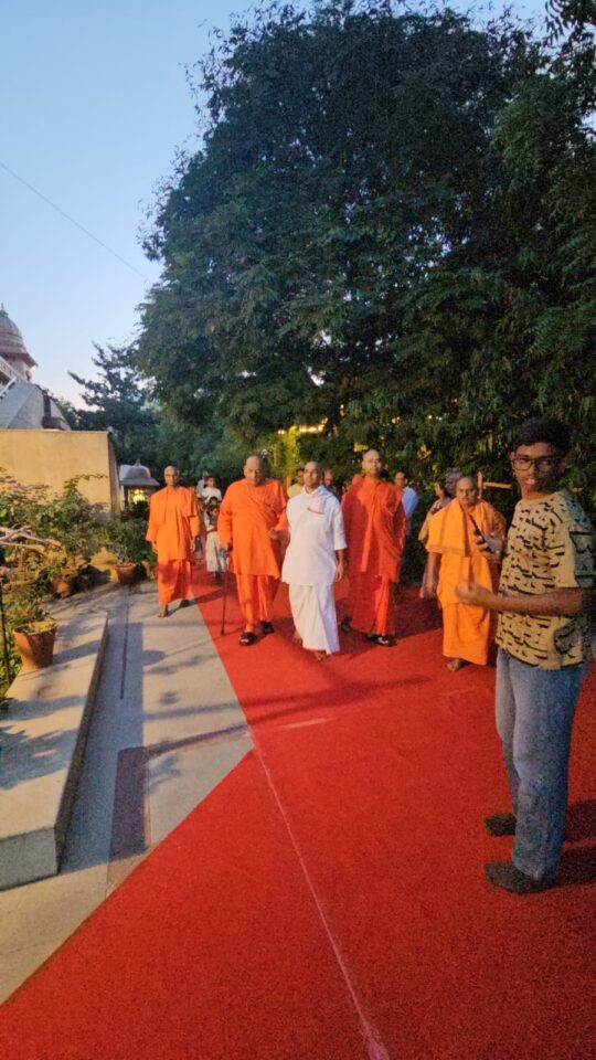 3rd November, 2025 : – Revered Swami Divyanandji Maharaj arrived at Ramkrishna Mission Jaipur at around 5:30 pm. He then offered Arghya to Sri Sri Thakur, Sri Sri Maa and Sri Sri Swamiji Maharaj at the temple. Then he went on to inaugurate the newly renovated kitchen of Ramkrishna Mission Jaipur. Devotees offered Pranam to Maharaj before evening Arati and also after it.