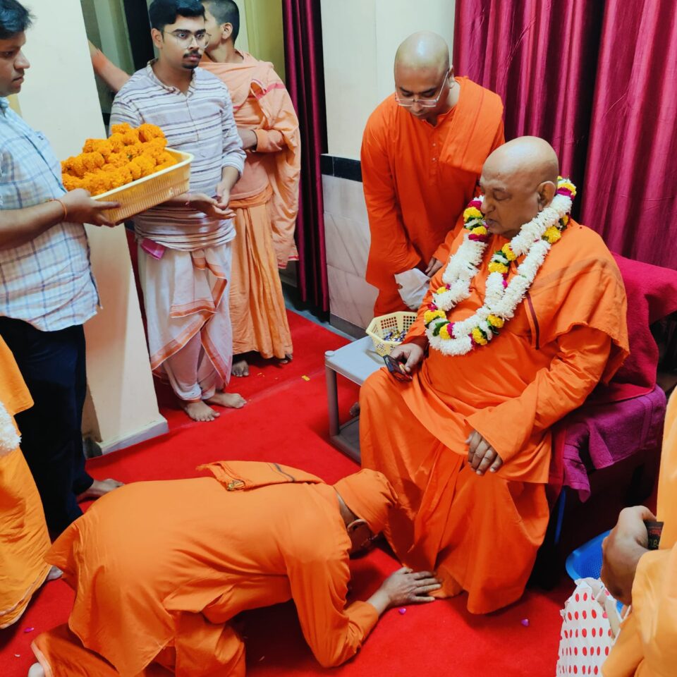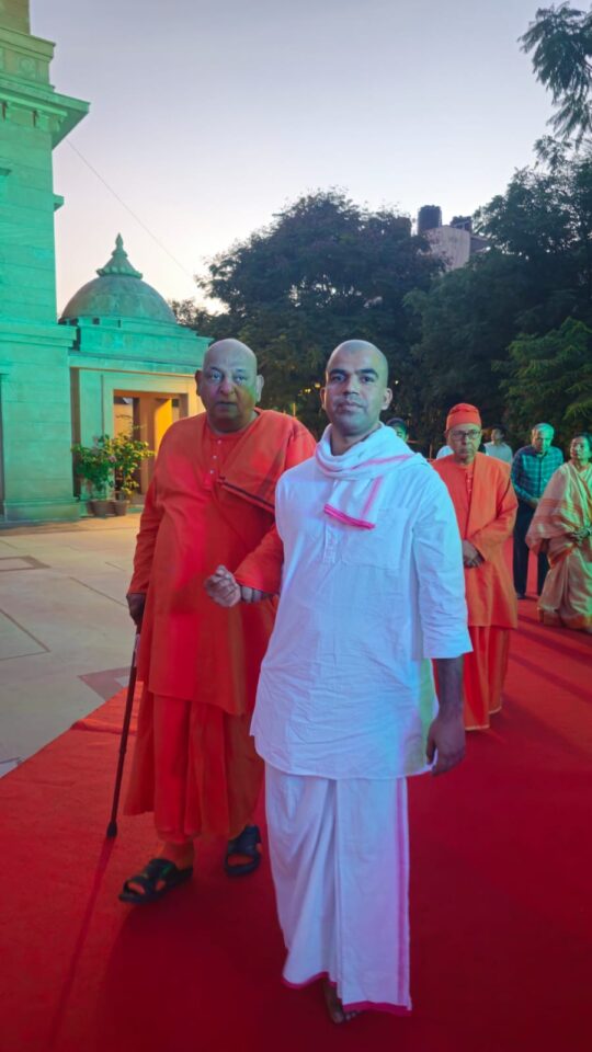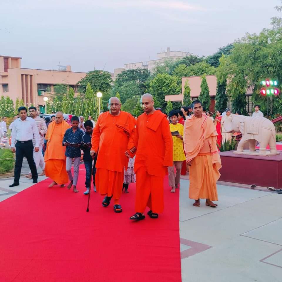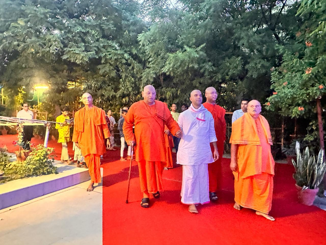 3rd November, 2025 : – Revered Swami Divyanandji Maharaj arrived at Ramkrishna Mission Jaipur at around 5:30 pm. He then offered Arghya to Sri Sri Thakur, Sri Sri Maa and Sri Sri Swamiji Maharaj at the temple. Then he went on to inaugurate the newly renovated kitchen of Ramkrishna Mission Jaipur. Devotees offered Pranam to Maharaj before evening Arati and also after it.